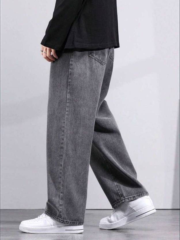 Men Straight Fit Mid Rise Grey Jeans